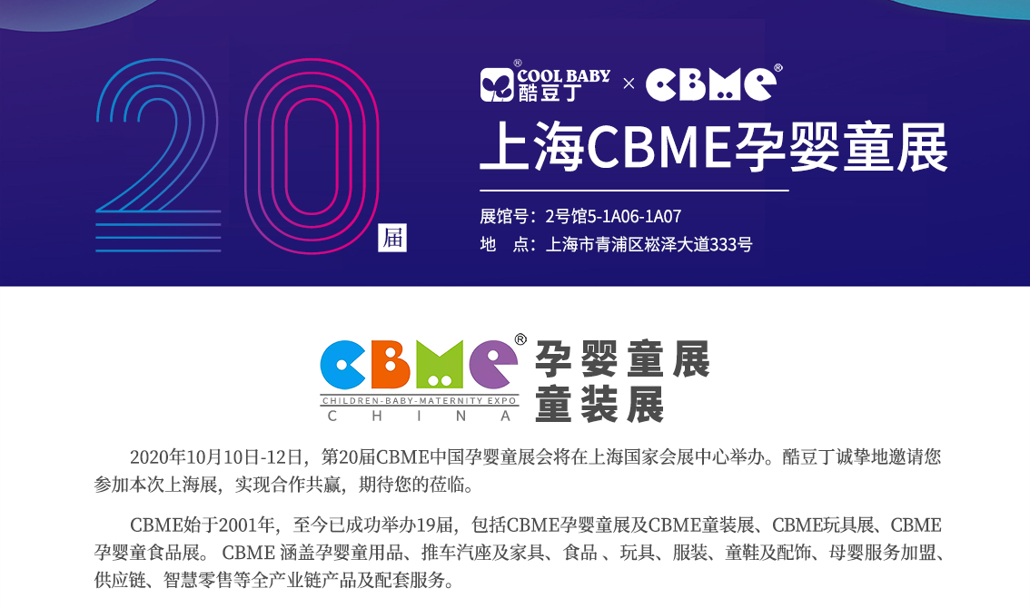 酷豆丁(COOLBABY) 邀請(qǐng)您參加2020上海CBME孕嬰童展