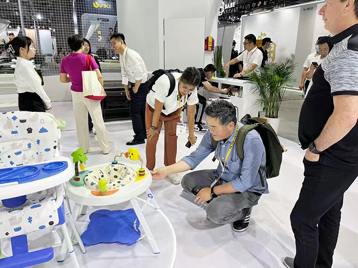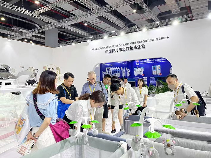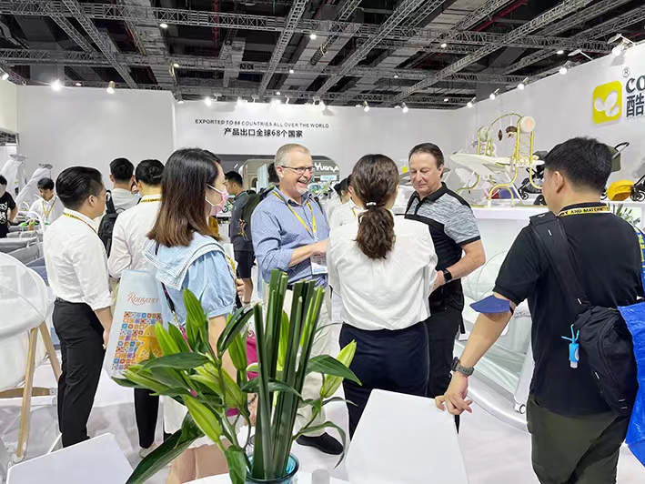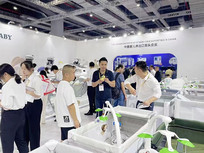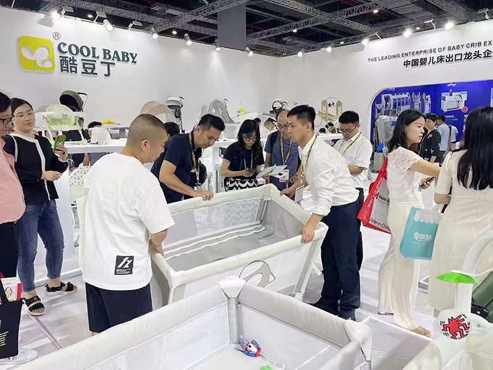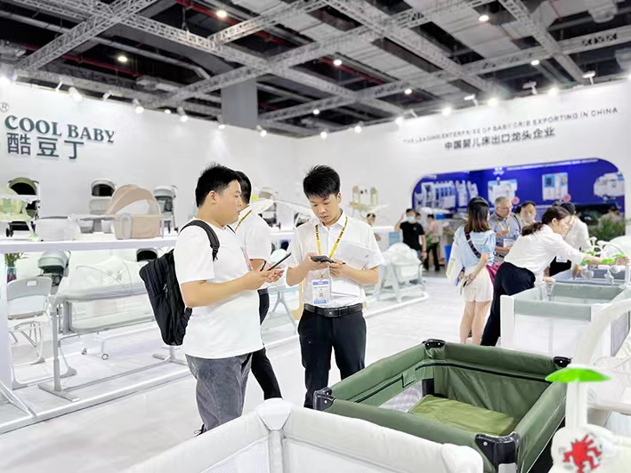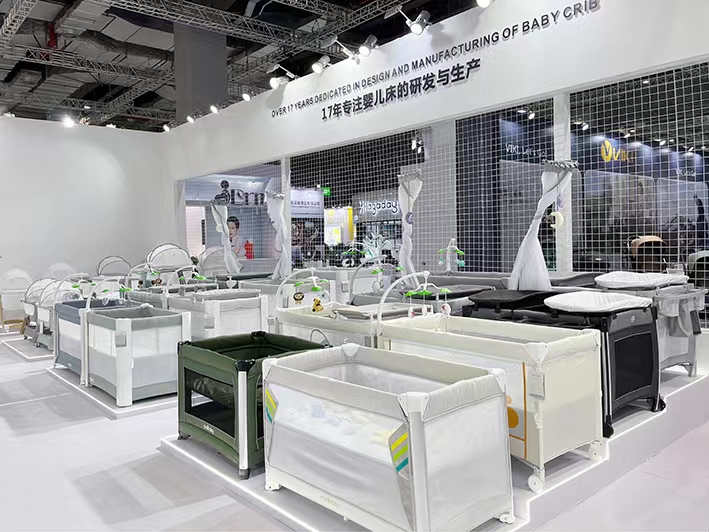 在CBME展會上,酷豆丁攜擁有獨家發(fā)明專利的一鍵開合式嬰兒床公開亮相,吸引了眾多采購商駐足參觀、溝通交流。