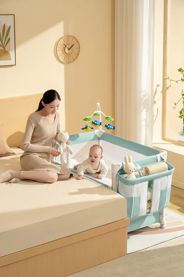 相較于市面上其他嬰兒床,它真正實(shí)現(xiàn)了1秒展開(kāi)1秒收合、零工具安裝,解決了普通嬰兒床安裝步驟多、操作難的痛點(diǎn);床頭插孔專利顛覆了傳統(tǒng)設(shè)計(jì),解決了嬰兒床搖鈴、蚊帳、置物欄安裝不穩(wěn)定的痛點(diǎn)。同時(shí),全身布套可拆洗也屬于業(yè)內(nèi)領(lǐng)先的獨(dú)創(chuàng)型設(shè)計(jì)。此外,P106嬰兒床功能齊全,具有搖床、游戲床、睡床等多種模式,折疊小巧方便攜帶。