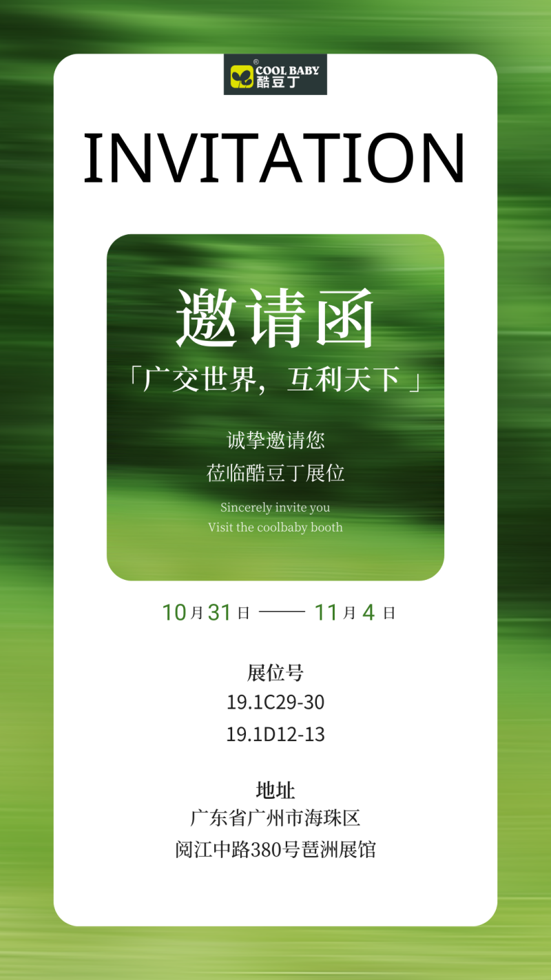 在這充滿機遇與挑戰(zhàn)的時代,安徽酷豆丁科技發(fā)展股份有限公司將再度揚帆起航,參與第136屆中國進出口商品交易會(廣交會)。這已是酷豆丁連續(xù)第17年登上廣交會舞臺,本屆展會酷豆丁將攜一系列智能創(chuàng)新產品登場,旨在通過這一國際性的交流平臺,展示我們在智能嬰童用品領域的最新成果。我們誠摯地邀請您于2024年10月31日至11月4日期間,親臨酷豆丁展位【19.1C29-30, 19.1D12-13】。期待在展會上與您相見,共享智慧碰撞的火花,共創(chuàng)母嬰產品的美好明天!