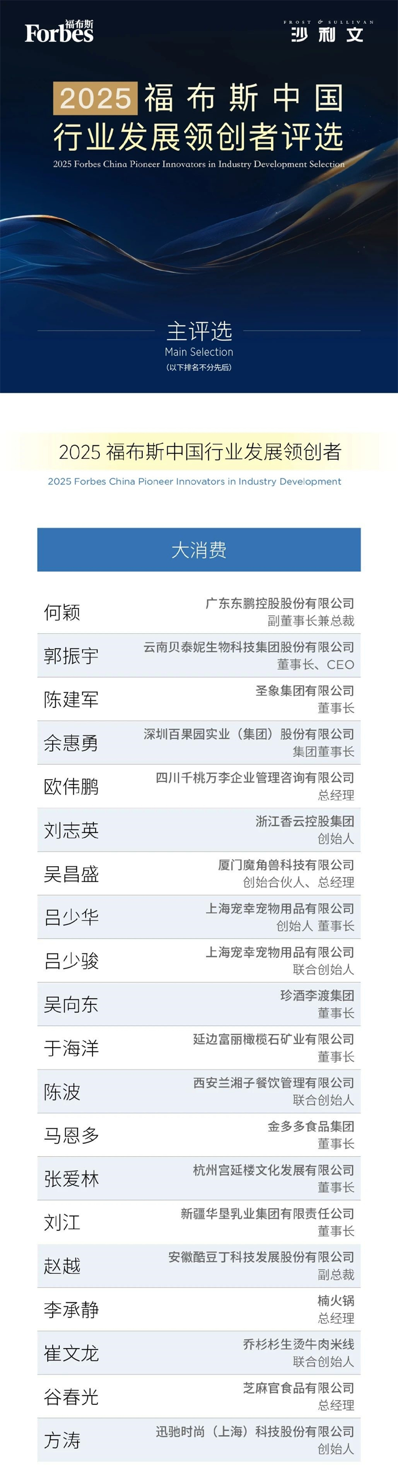 2025年3月22日,由福布斯中國與弗若斯特沙利文(Frost & Sullivan,簡稱“沙利文”)聯(lián)合主辦的“中國企業(yè)家年會暨福布斯中國行業(yè)發(fā)展領(lǐng)創(chuàng)者評選”在上海盛大舉行。
