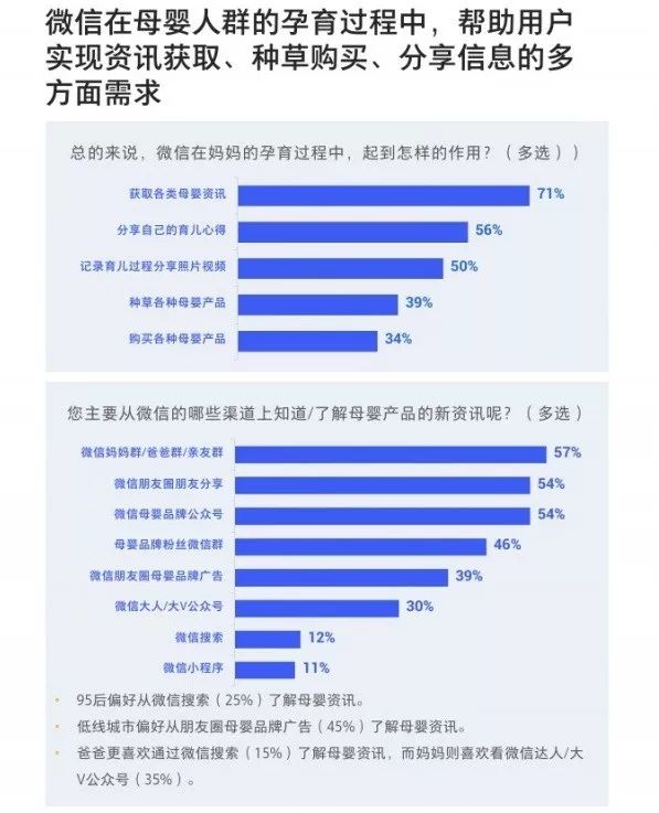 1、微信在母嬰人群的孕育過(guò)程中,幫助用戶實(shí)現(xiàn)資訊獲取、種草購(gòu)買、分享信息的多方面需求