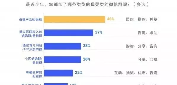 2、微信群是母嬰人群獲取資訊、社交分享及購(gòu)買的重要綜合陣地
