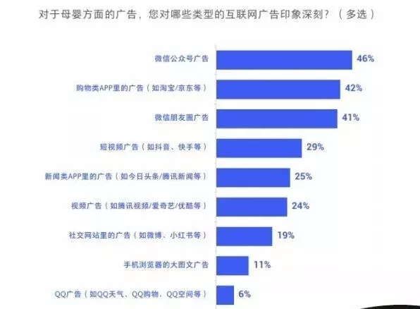 4、超四成母嬰人群對(duì)微信和購(gòu)物APP的廣告印象深刻