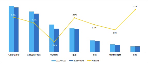 12月天貓平臺嬰童用品主要品類均價(jià)及同比