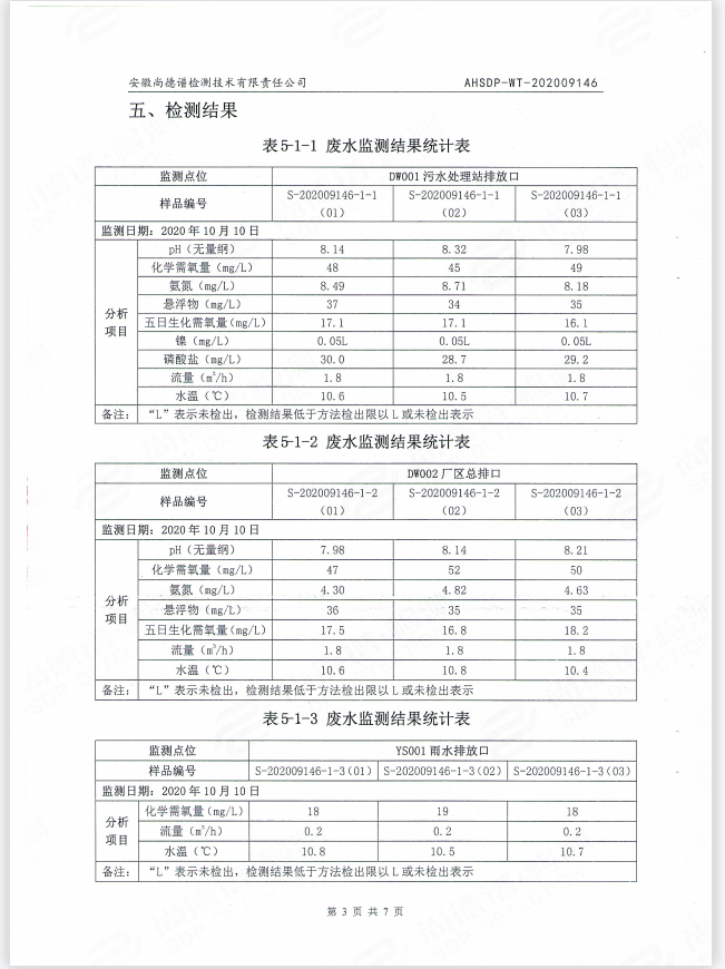委托監(jiān)測單位為安徽尚德譜檢測技術(shù)有限責(zé)任公司,委托監(jiān)測內(nèi)容有組織廢氣、無組織廢氣、廢水等。根據(jù)監(jiān)測結(jié)果可知,公司?2020年度主要污染物排放均達(dá)到現(xiàn)正執(zhí)行的排放標(biāo)準(zhǔn),無超標(biāo)情況發(fā)生。